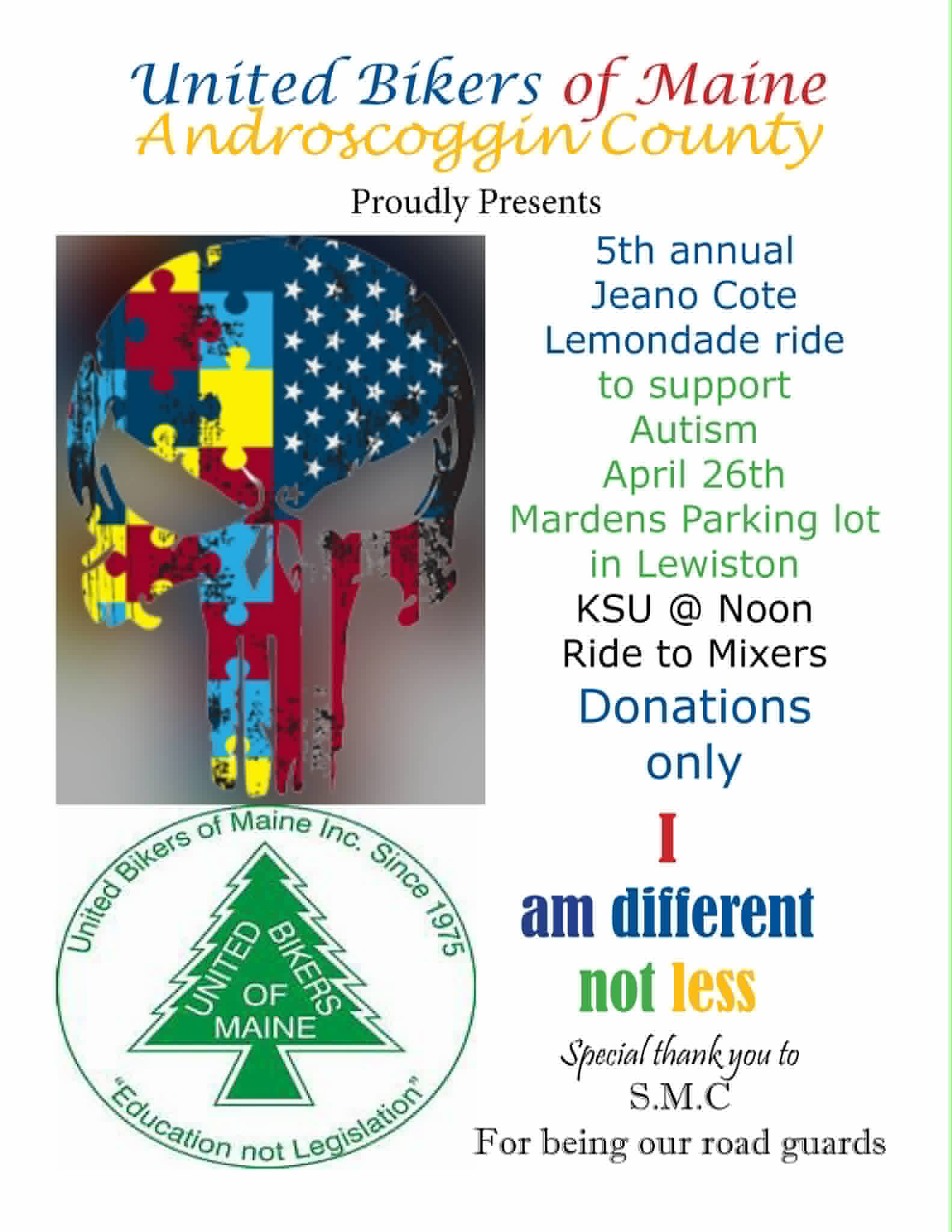 | SUN ? | UBM Androscoggin County - Ride for Autism, 5th annual |